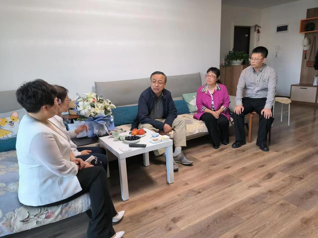臧永军一行来到韩老师家中,向韩老师送上了节日祝福的鲜花和暖心关怀的慰问金。交流中,臧永军关切地询问韩老师就医治疗、康复训练、日常生活情况,嘱咐材化学院尽最大努力为韩老师生活和工作提供便利。他充分肯定了韩老师在学院学科建设中作出的贡献,对她克服疾病影响坚持开展教学科研工作给予了高度赞扬,还就学科建设、科学研究、人才梯队建设等内容与韩老师进行了深入交流和热烈讨论。