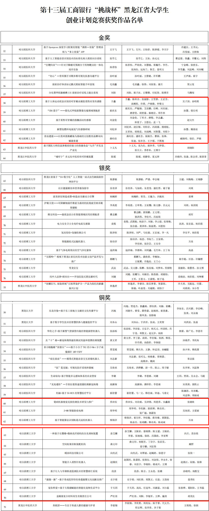 近日,由共青团黑龙江省委员会、黑龙江省教育厅、黑龙江省人力资源和社会保障厅、黑龙江省科学技术协会、黑龙江省学生联合会主办,黑龙江大学承办的第十三届“挑战杯”黑龙江省大学生创业计划竞赛暨首届大学生创意设计大赛落下帷幕。经过激烈角逐,我校参赛项目荣获金奖5项,银奖10项,铜奖11项的喜人成绩,同时经大赛评审专家委员会的综合评审我校《新型氢燃料电池氢气传感器研制》项目入围国赛,尹婧、邬长明、孙明琪、孙慧、吴子剑、赵文杰、姚春波、徐岩、臧晓明9位老师被授予“优秀指导教师”荣誉称号,我校被授予“优秀组织奖”,各项成绩均处于全省高校前列。