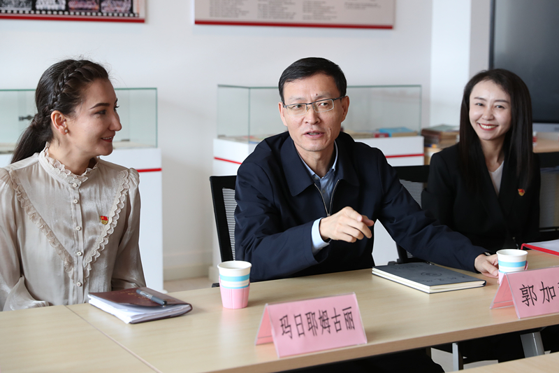宣讲会后,玛日耶姆古丽·吾布力喀斯木和少数民族学生开展座谈交流。