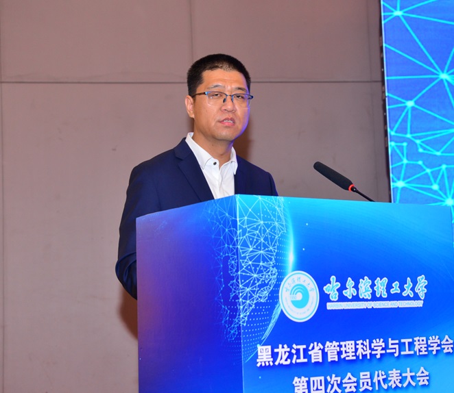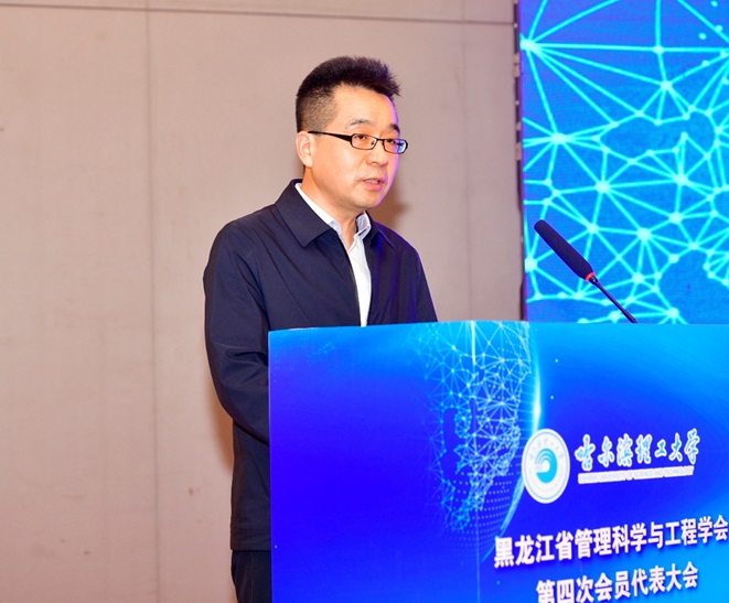 哈尔滨理工大学经济与管理学院院长武建龙主持学会换届并作为第三届理事会理事长致辞