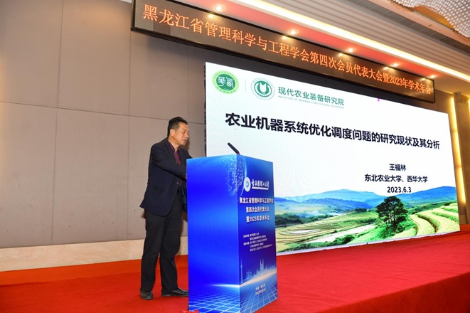 东北农业大学王福林教授致辞并作《黑龙江省管理科学与工程学会第二届理事会工作报告》