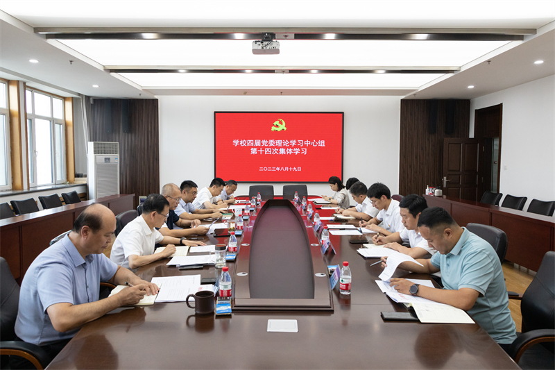 按照主题教育开好专题民主生活会工作要求,8月19日下午,学校党委书记赵琳在教学主楼第二会议室主持召开四届党委理论学习中心组第十四次集体学习,深入学习习近平总书记在听取四川省委和省政府工作汇报时发表的重要讲话;习近平总书记关于党的建设的重要思想;习近平总书记关于严肃党的政治生活的重要讲话和重要指示批示精神;习近平总书记关于本地区本部门本领域的重要讲话和重要指示批示精神;习近平总书记关于以学铸魂、以学增智、以学正风、以学促干的重要论述;《中国共产党章程》《关于新形势下党内政治生活的若干准则》和《县以上党和国家机关党员领导干部民主生活会若干规定》等内容。