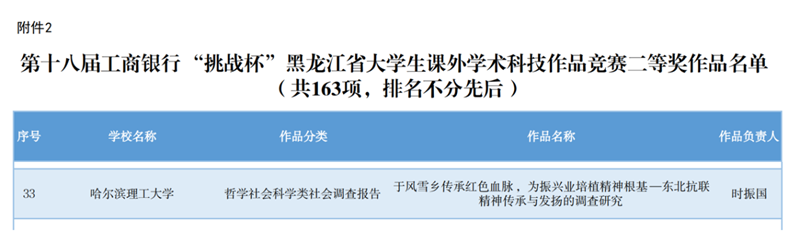 调研报告获评第十八届“挑战杯”黑龙江省二等奖