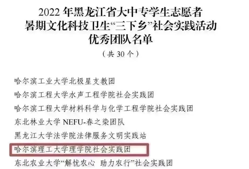 实践团队获评黑龙江省“三下乡”社会实践优秀团队