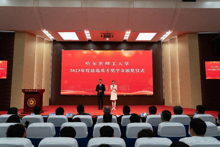 伴随着主持人的讲解,现场师生了解了北京校友会凝聚在京校友和回馈母校的历程。北京校友会一直秉承“学子情系母校,推进资源共享,发展校友经济,合力报效祖国”的宗旨,将广大在京的哈理工校友凝聚在一起。北京校友会已成为在京哈理工人的校友之家,也是广大理工学子实习、就业、创业的平台,更是学校在首都对外宣传的重要窗口。北京校友会已连续13年为理工学子颁发奖学金,充分体现了北京校友会助力学子成长、感恩回报母校的深厚情谊。“儒苑英才奖学金”是我校北京校友会为在校本科生设置的长期奖励项目,每年评定一次,奖励额度为2万元/人,是我校现设各类奖学金人均奖励额度最高的。
