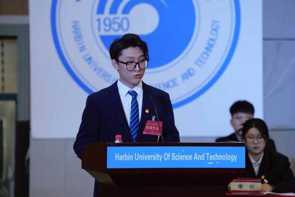 第三届学生会执行主席初雨代表哈尔滨理工大学学生会做了题为《青春向党 踔厉奋发 奋笔书写全心全意为同学服务的新篇章》工作报告。代表团分组讨论,代表们踊跃发言,热议学代会报告。全体代表按照既定议程和大会选举办法,经过民主投票,选举产生哈尔滨理工大学第四届学生会主席团成员和第四届研究生会主席团成员。闭幕式上,全体代表审议通过《哈尔滨理工大学第三届学生会工作报告》等相关决议并确定第四届学生会常任代表和第四届研究生会常任代表。胡海瑞、于泓萱、邢起源、李韩帛、张育菘5人当选为第四届学生会主席团成员,王超、王猛、高钰蓉、顾超、徐姝昱5人当选为第四届研究生会主席团成员。本次大会向12个学院共459名学生征集了意见,形成教育教学、成长成才、生活服务、权益维护等方面提案45件,会后将提案送达相关部门,并对提案作出答复。