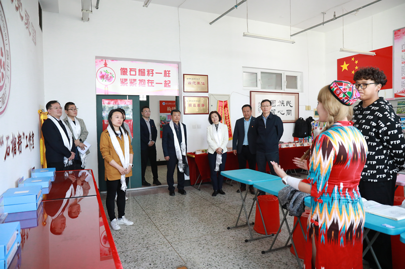 5月16日下午,省委教育工委统战部部长艾萌、省委统战部理论政策研究室主任赵精华、省民宗委文化宣传教育处二级调研员刘淑珍、佳木斯大学党委常委、统战部部长王宏等一行7人来校进行黑龙江省高校铸牢中华民族共同体意识教育实践基地实地测评。学校党委书记赵琳、党委副书记郭加利会见专家组一行,共同为“‘理工石榴红’——石榴花开耀北疆、颗颗红籽心向党”铸牢中华民族共同体意识教育品牌标识揭牌。