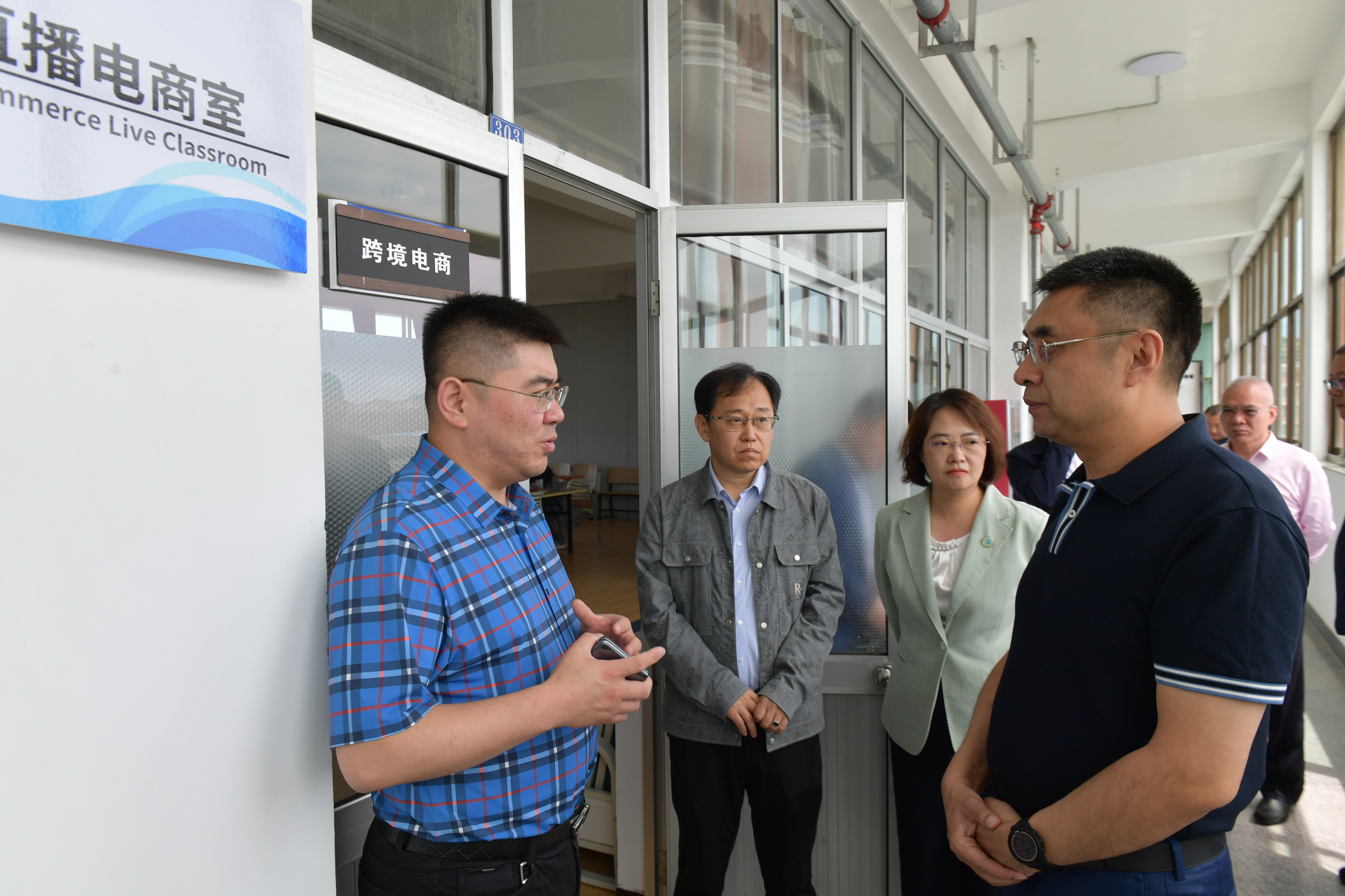 在荣成学院,学校领导听取荣成学院院长段宏伟代表院班子作《扎实做好审核评估工作奋力推进学院高质量发展》的工作汇报,实地走访校园,深入经管系跨境电商实验室了解校企合作共建跨境电商平台运营情况,深入工程训练中心了解“智能制造工程技术人员专业技术等级考核站点”建设情况,深入教学楼随机听课、到食堂与学生亲切交流,并与学院中层干部和骨干教师进行座谈,就干部教师关心关注的编制薪资、人才引进、队伍建设、科研平台等方面问题进行现场交流。