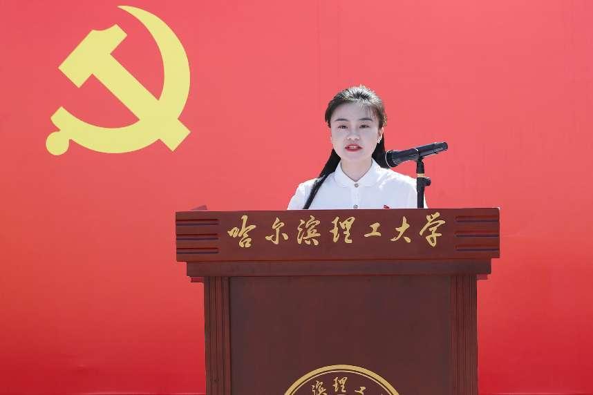 迎着灿烂的朝阳,学校国旗护卫队将鲜艳的五星红旗冉冉升起,全场师生深情注目国旗,齐声高唱国歌。“你在祖国北方,学子菁菁书声朗朗,大珩精神薪火相传,三电黄埔美誉远洋……”伴随着激情澎湃的乐曲和雄壮嘹亮的歌声,校旗在风中飘扬。程瀚乐、张哲、郭吉蕊、张茗芮四名同学的动情朗诵《不忘初心》,激励全校师生党员始终坚定不移,听党话跟党走,勇毅前行。博士毕业生党员于金闯的发言表达了对党组织、学校的不舍与感激之情,为建设龙江、振兴龙江奉献自己力量的决心和信心。本科毕业生党员段珍灵,号召广大毕业生党员不负党的期望、母校嘱托,为祖国的繁荣富强贡献青春力量。硕士毕业生党员潘心诚带领全体党员师生面向党旗庄严宣誓,重温入党誓词。毕业生党员们纷纷表示,此次党课“党味”浓聚人心,“形式新”接地气,“鲜味”足润人心。