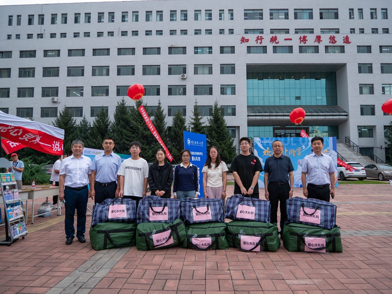 最美不是下雨天,是理工与新生娃的初次相见。忽降的大雨没有淋熄迎新的热情,反而带来了无限爱意。校领导向贫困生代表发放爱心大礼包,为新生撑伞,志愿者们冒雨帮助新生搬运行李……迎新现场处处洋溢着理工师生的温情。