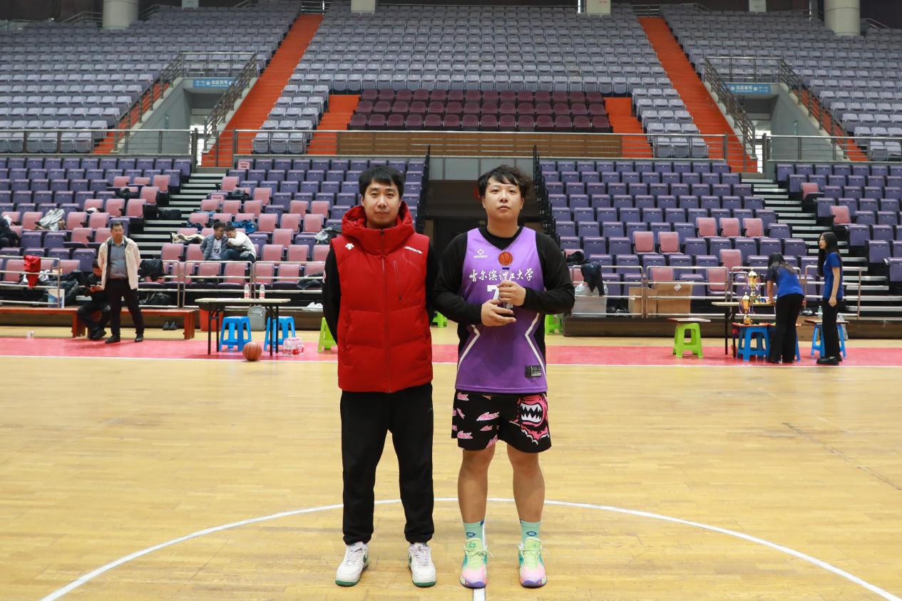 校工会教职工文体活动负责人马宇宁和首届篮球协会会长范洪涛