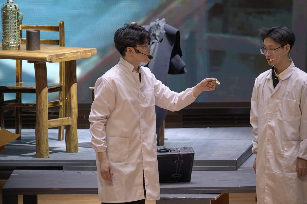 演出现场座无虚席,舞台上同学们用细腻的台词,丰沛的情绪将人物演绎得入木三分,同学们在舞台上的呐喊亦是哈理工人的铮铮誓言:“我们这些后来者一定要让为我们伟大祖国的建设和发展洒尽心血、用尽气力的科学家们,和那些分布在祖国各个角落默默无闻的科研工作者们看到永恒不灭的希望!看到永恒不灭的光!”话剧落幕,全场掌声雷动,热泪盈眶。