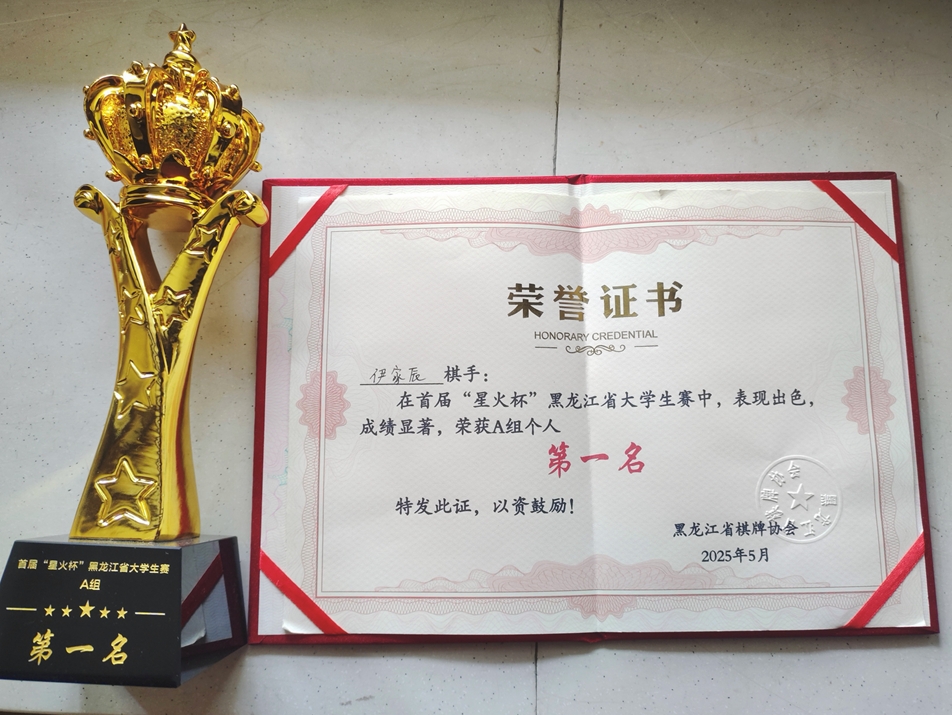 在深入推进“五育并举”教育体系、着力培养德智体美劳全面发展时代新人的背景下,我校体育育人工作再结硕果。5月24-25日,首届“星火杯”黑龙江省大学生围棋个人赛在哈尔滨成功举办。我校测控技术与通信工程学院2022级学生伊家辰凭借精湛棋艺与顽强意志,在强手如林的A组比赛中以七战全胜的骄人战绩勇夺冠军(全省第一)! 凭借此冠军荣誉,伊家辰同学荣升为业余6段。同时,我校代表队亦表现卓越,分别荣获A组团体第二名、B组团体第三名的优异成绩,充分彰显了我校学子的综合素质和团队实力。