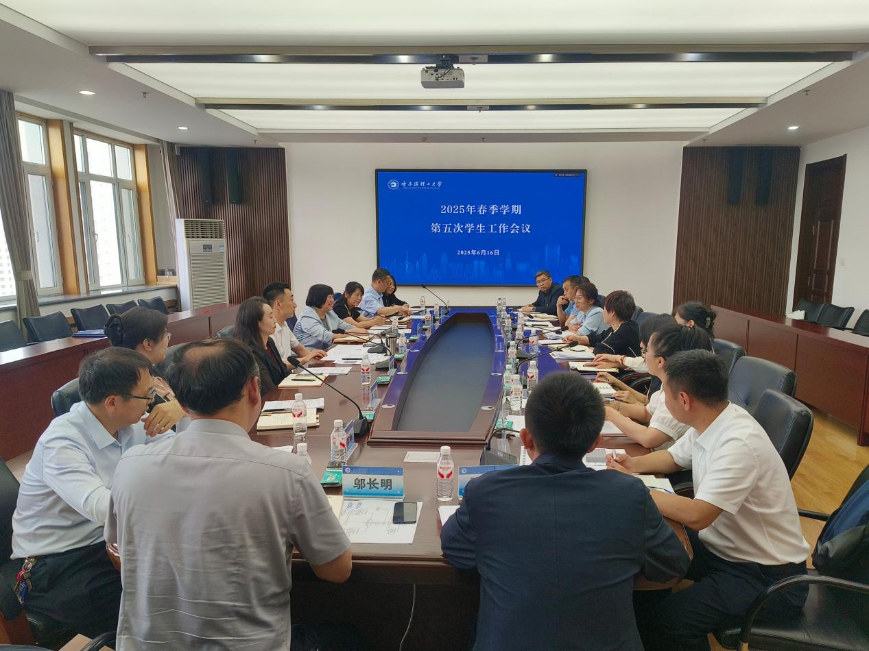 6月16日下午,学校在西区教学主楼第二会议室召开2025年春季学期第五次学生工作会议。学校党委副书记赵水杉出席会议,党委学生工作部 大学生就业服务中心和团委班子成员、各学院党委副书记参会,荣成学院线上同步参会。会议由党委学生工作部部长、学生处处长戴湘竹主持。