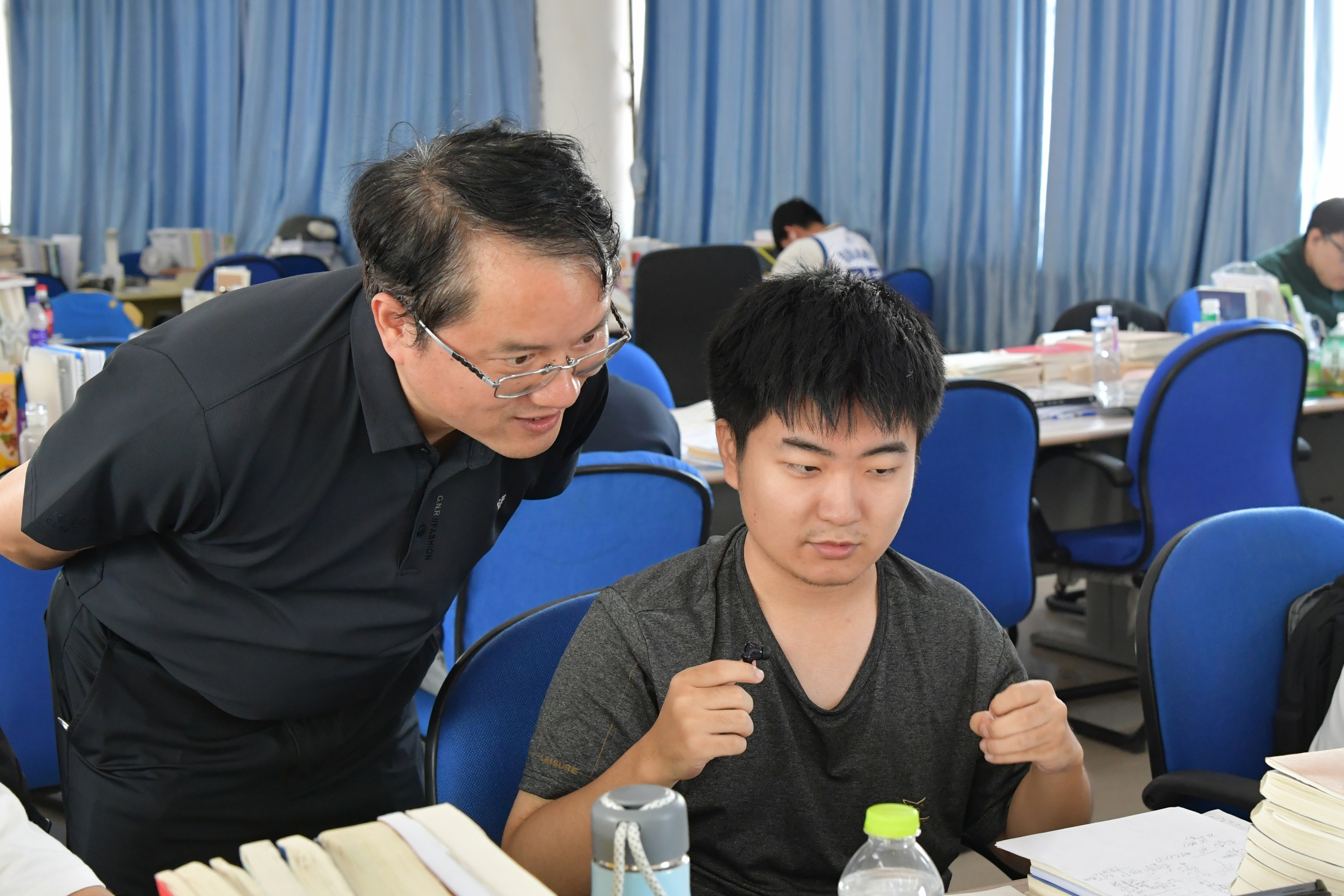 此外,周宏根还实地走访了荣成学院的教学楼、艺术楼、图书馆、学生寝室等场所。在教学楼内,他采取随机听课看课的方式,深入课堂观察教师教学方法、学生课堂参与度,课后与授课教师交流教学思路与改进方向;在艺术楼和图书馆,重点了解教学资源保障、空间利用效率及服务学生的实际情况;在学生寝室,与学生亲切交谈,关切询问住宿条件、生活需求及日常管理服务情况,切实掌握学生在校学习与生活的真实状态,为后续优化校园管理、提升服务质量提供依据。